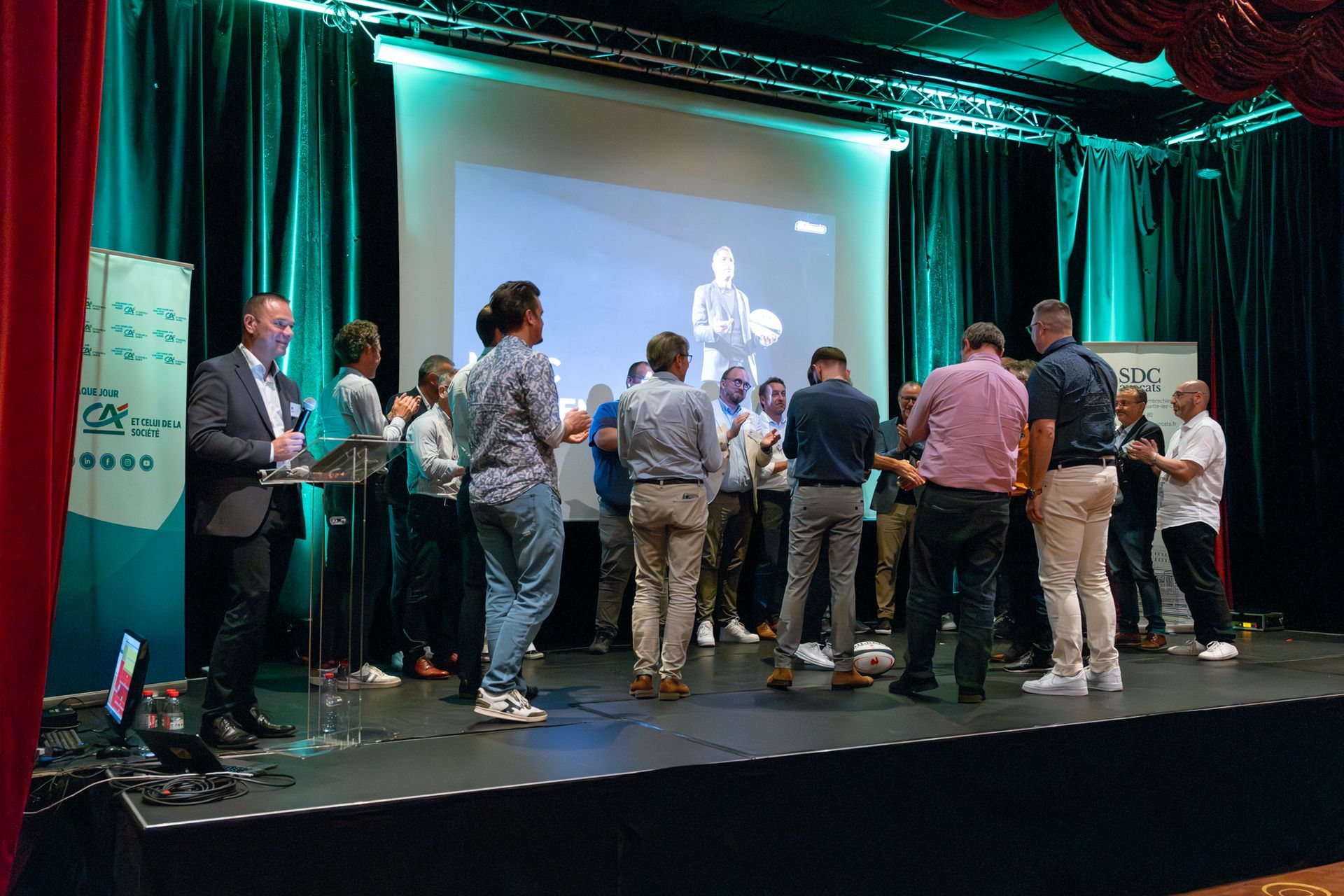 À la fin de cette conférence, les membres ont eu l'opportunité de rejoindre Marc sur scène et de se mettre dans la peau de véritables joueurs de rugby en assistant à une causerie d'avant-match. Un moment unique qui restera gravé dans les mémoires !